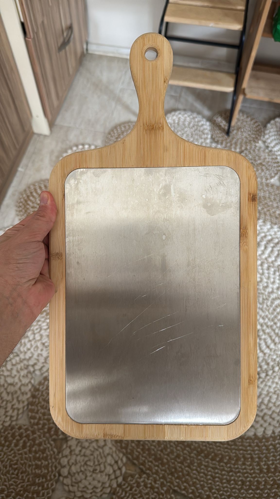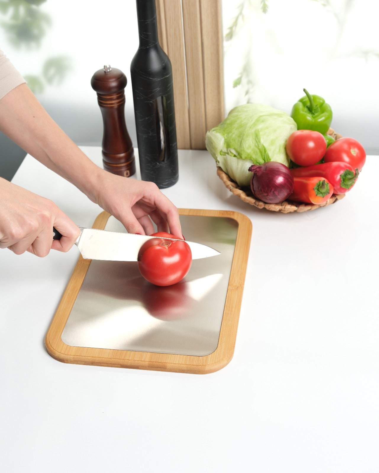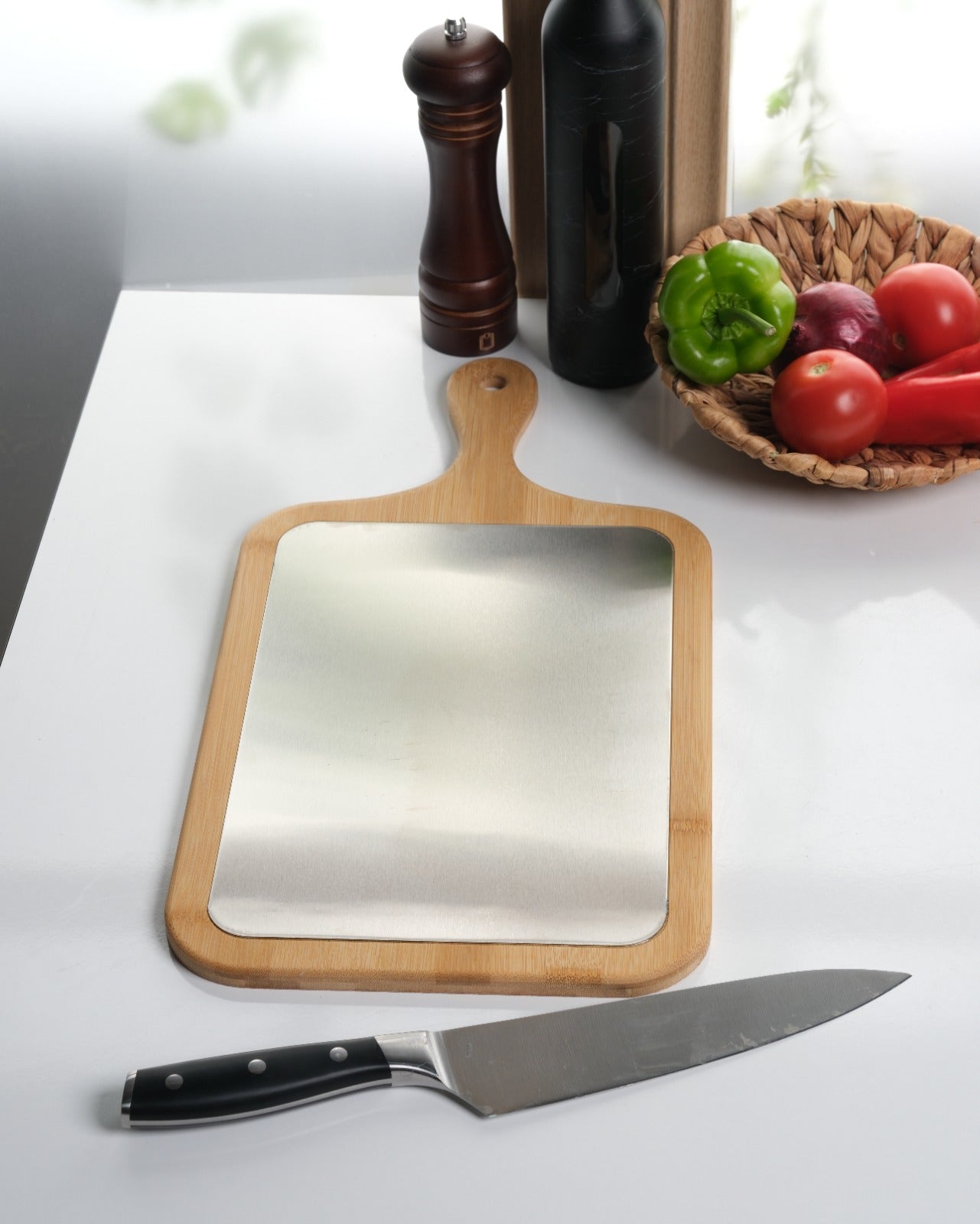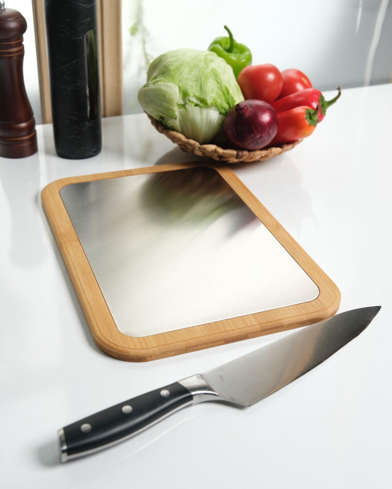 Plastik tahtaları tamamen bıraktım. Metal yüzeyi çok hijyenik, bambu tarafı da harika görünüyor. Gerçekten mutfağımın havası değişti!
